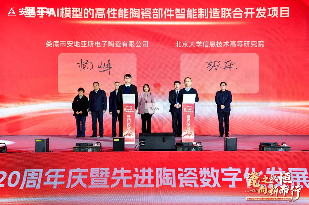 活動(dòng)中,在市領(lǐng)導(dǎo)和各位嘉賓的見證下,安地亞斯與北大信息技術(shù)高等研究院簽約“基于AI模型的高性能陶瓷部件智能制造聯(lián)合開發(fā)項(xiàng)目”,與世界陶瓷科學(xué)院簽約“共建高性能先進(jìn)陶瓷材料聯(lián)合實(shí)驗(yàn)室”。北大信息技術(shù)高等研究院高級(jí)研究員、智能物聯(lián)軟硬件產(chǎn)業(yè)化實(shí)驗(yàn)室主任易海明圍繞《人工智能賦能新型工業(yè)化》,世界陶瓷科學(xué)院院士、亞太材料科學(xué)院副院士林華泰圍繞《高性能氮化硅基陶瓷及零部件研究》,分享了最新的研究成果和實(shí)踐經(jīng)驗(yàn),共同探討人工智能、硅基陶瓷的最新進(jìn)展、創(chuàng)新應(yīng)用和未來趨勢(shì),讓大家受益匪淺。