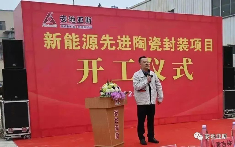 2022年11月20日早上,萬里無云,溫暖的陽光灑滿大地,公司新能源先進陶瓷封裝項目工地上彩旗飄飄、火紅的氣球隨風飄揚。主席臺上“新能源先進陶瓷封裝項目開工儀式”幾個大字分外醒目,今天是安地人高興的日子,我們將在這里舉行新廠房建設開工儀式。
